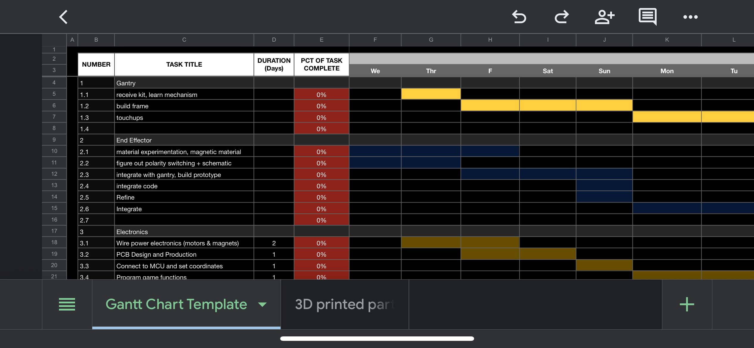 The project was divided into several subteams that worked in parallel. The gantry team designed and built the CoreXY mechanism, focusing on precise motion control, belt routing, and structural stiffness to ensure planchette control is repeatable and smooth.
